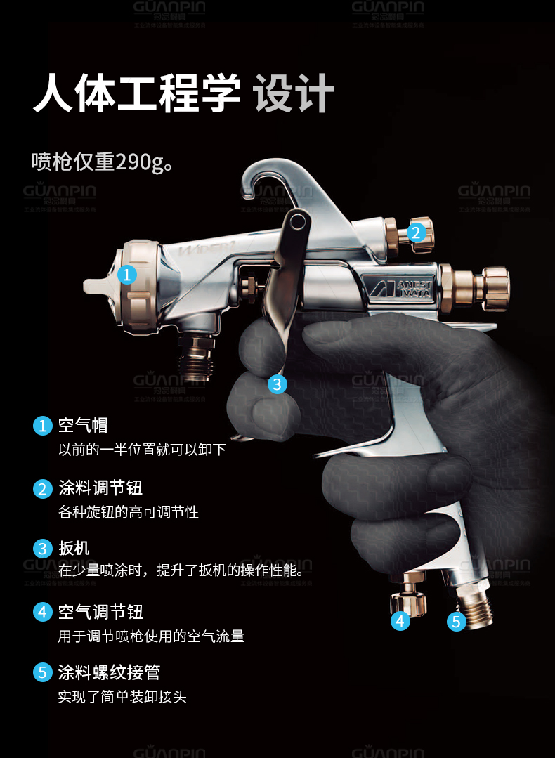 日本岩田新款W-101WIDER1-08E2P手动油漆喷漆枪家具汽车喷枪