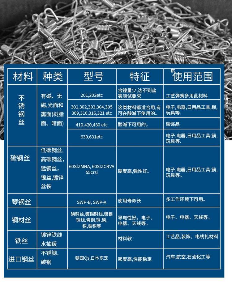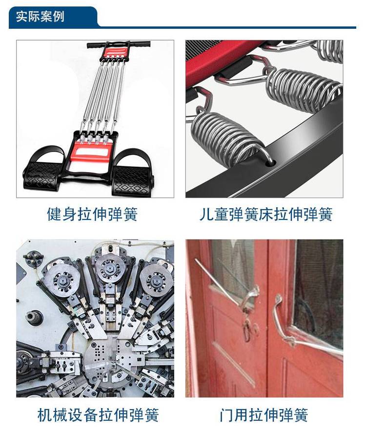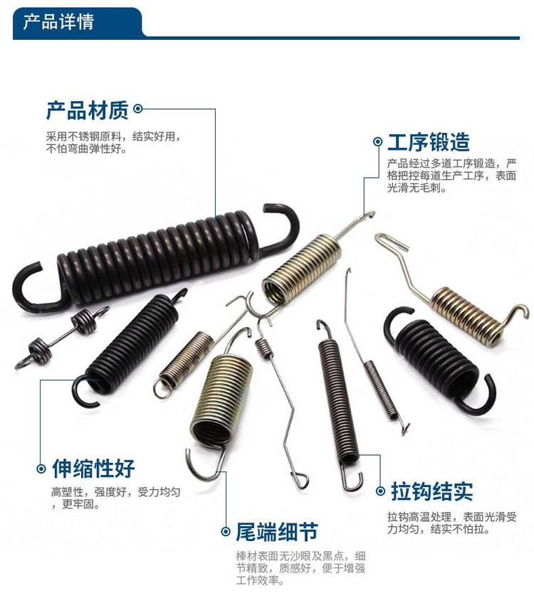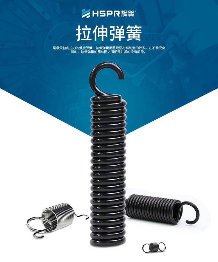 拉伸弹簧是承受轴向拉力的螺旋弹簧,拉伸弹簧大都用圆截面材料制造。在不承受负荷时,拉伸弹簧的圈与圈之间大都是并紧的没有间隙。