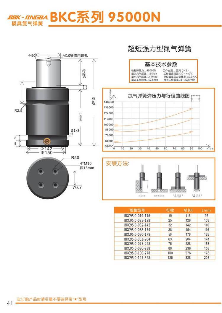 BKC-95000N 氮气弹簧 超短强力型氮气弹簧 模具氮气弹簧生产厂家