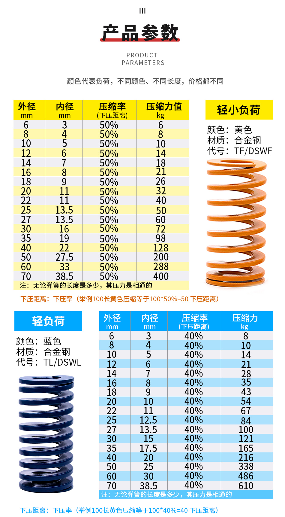 产品特性 | 模具弹簧 | ||
