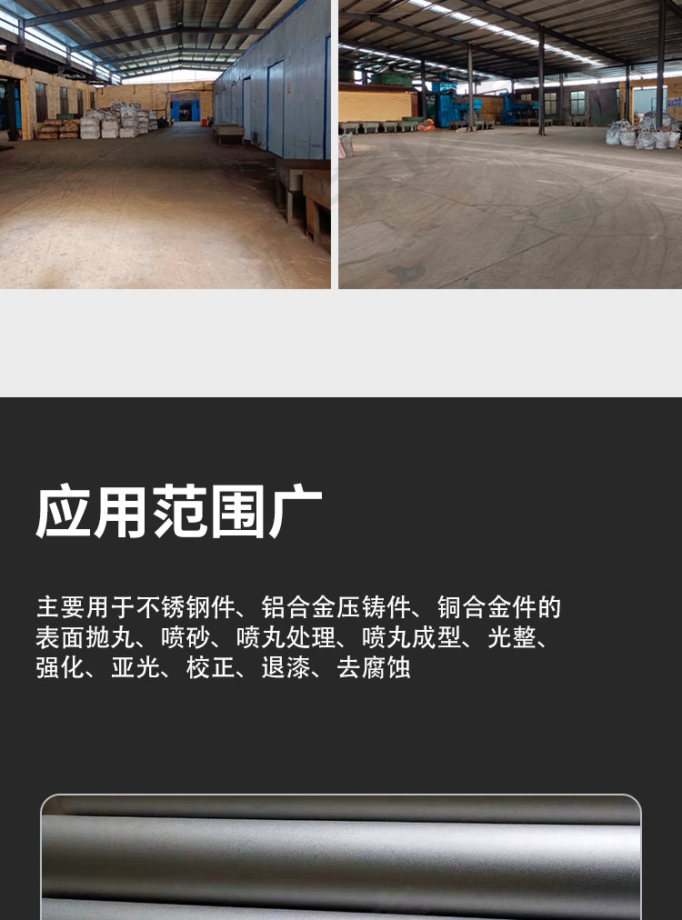 适用范围 | 铝件、不锈钢件、汽车轮毂等零件处理 | ||
