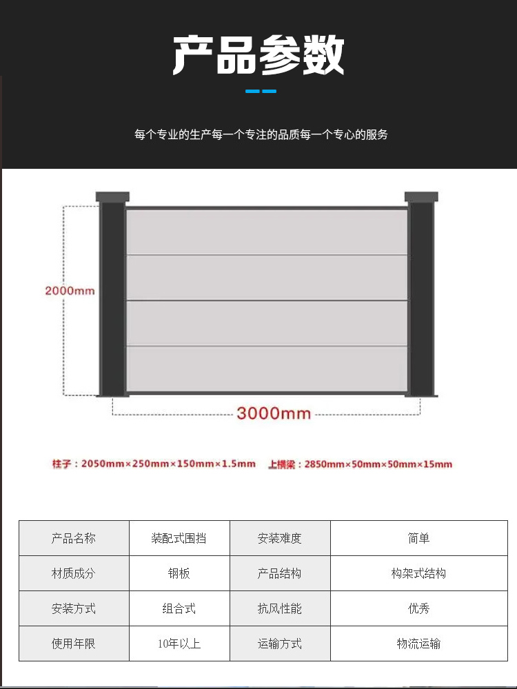 一诺装配式围挡2.5米高灰白色防撞围墙市政施工围挡