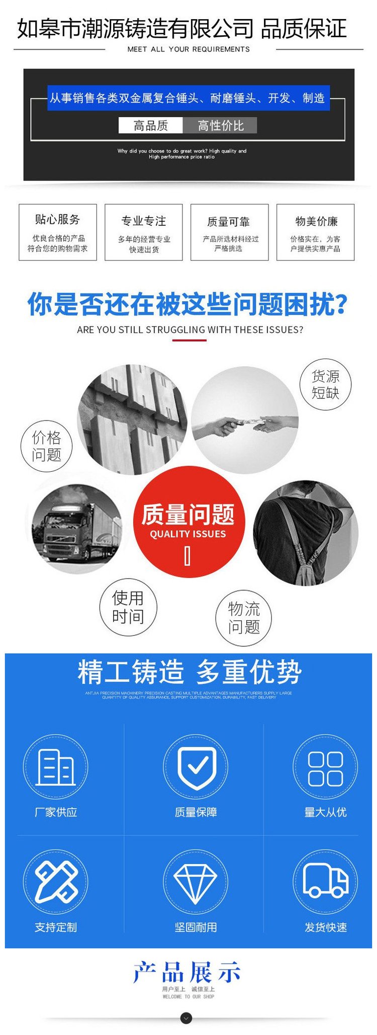 潮源耐磨复合破碎机锤头高猛钢细碎机榔头可定制