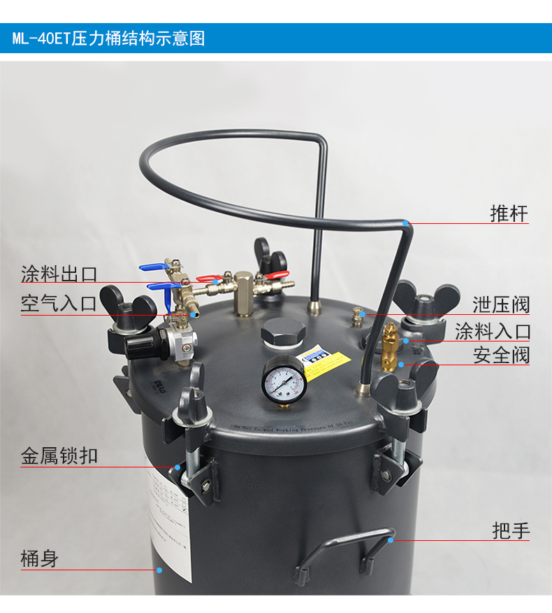 明丽经济型无搅拌压力桶 10L/20L/40L油漆胶水脱模剂喷涂压力罐 型号 | ML-10ET/20ET/40ET压力桶 | ||