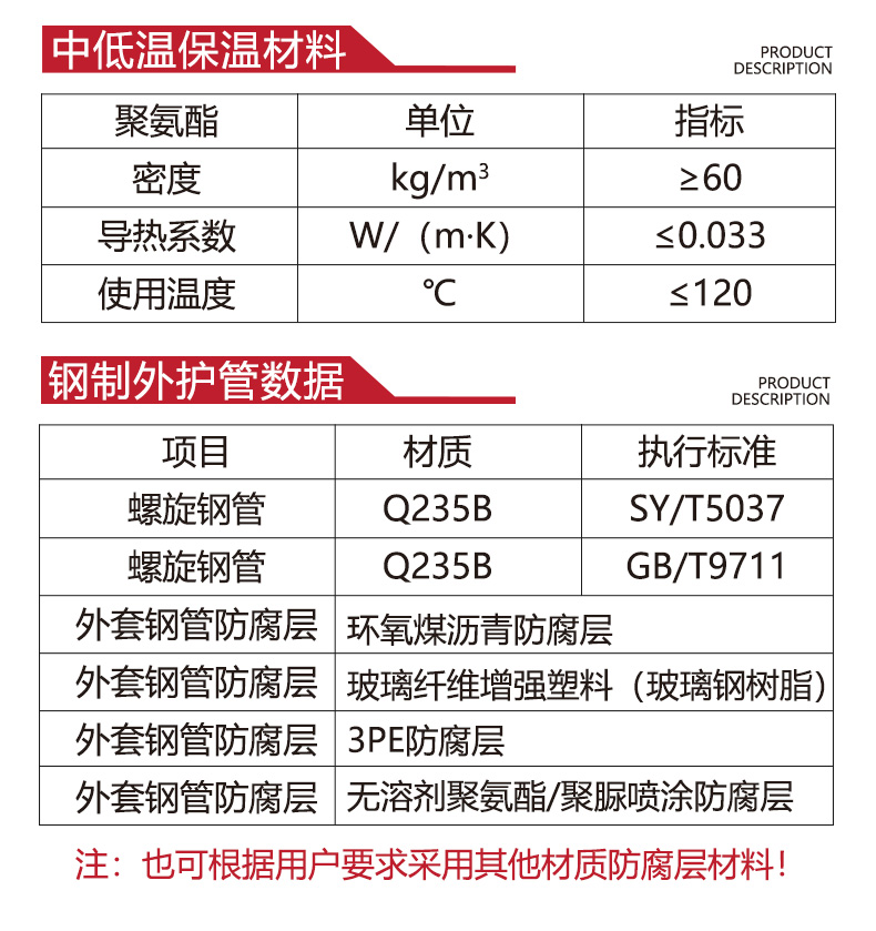 产品表面描述 | 工作钢管 耐高温复合保温层 钢制外护管 防腐层 | ||