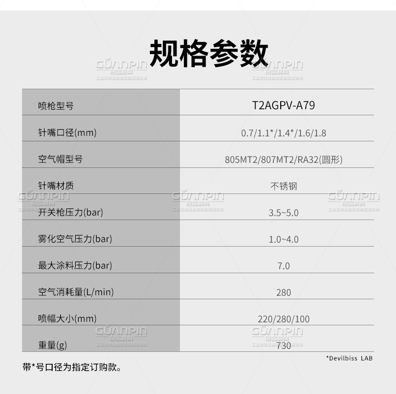 喷嘴口径 | 0.7/1.1/1.4/1.6/2.2mm | ||