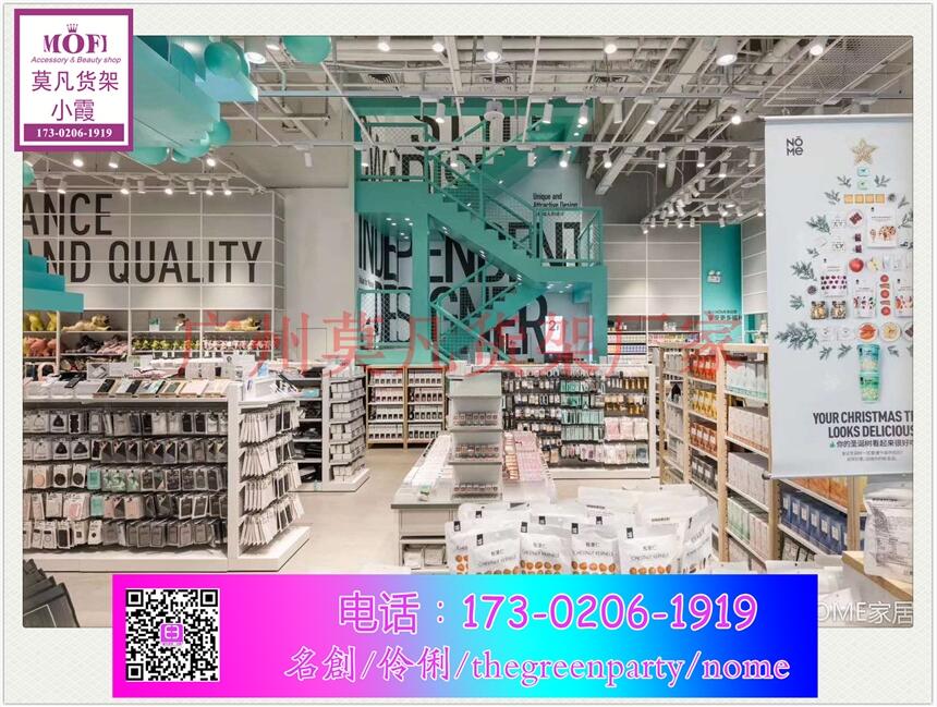 nome货架设计、诺米家居装修风格、名创优品货架厂家