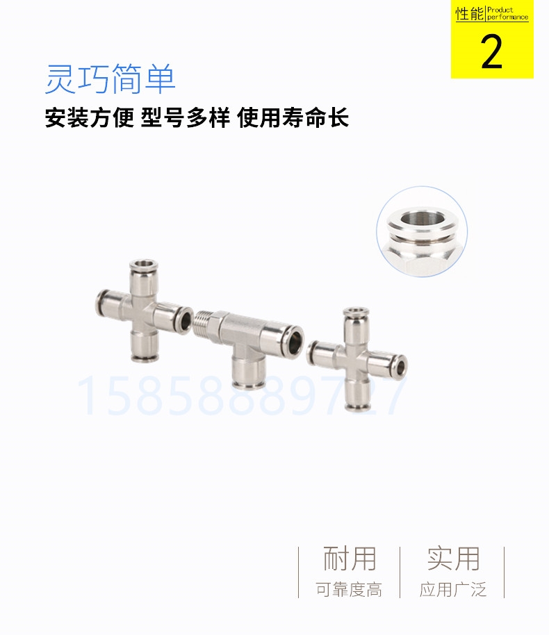 2、插接管子时一定要插到接头的底部,管子着未插到底有可能会导致漏气.