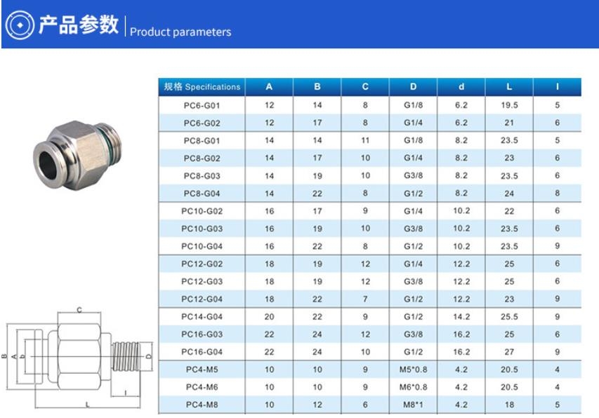 不锈钢气管G螺纹快插直通PCG详细介绍: