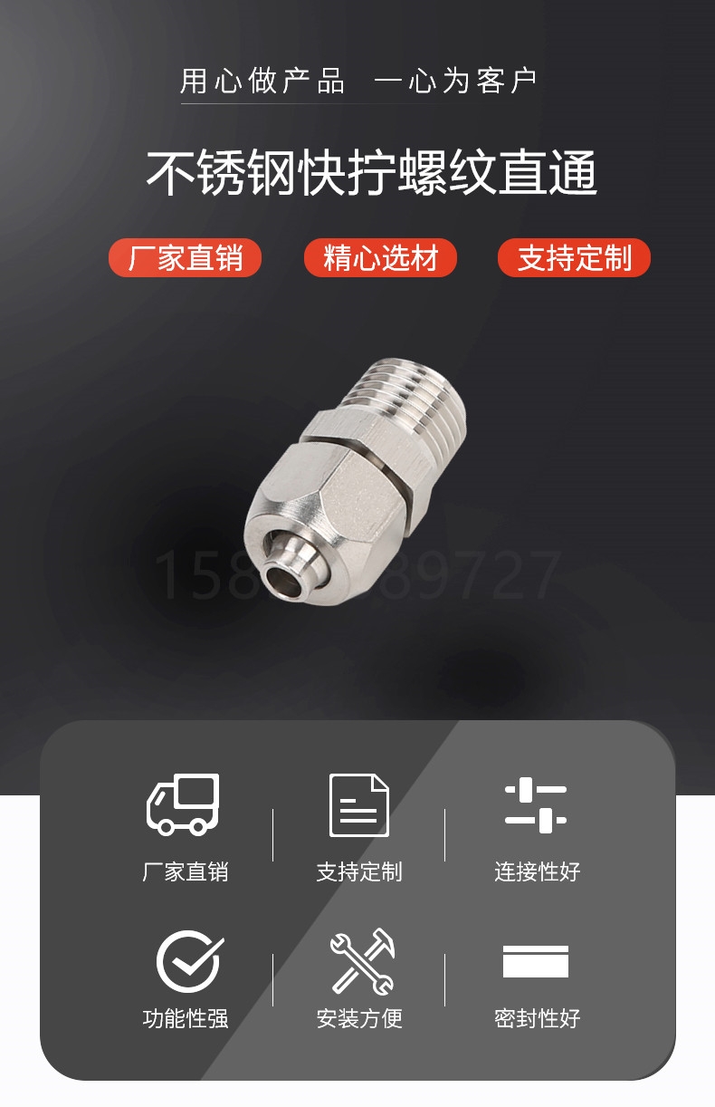 2、插接管子时一定要插到接头的底部,管子着未插到底有可能会导致漏气.