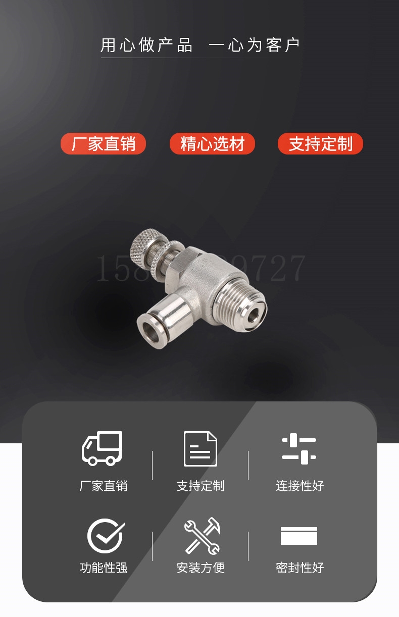 不锈钢管道式节流阀SA8 管道式气动快插接头调节阀SA6