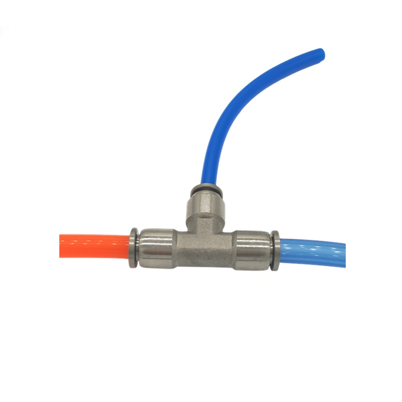 不锈钢T型快插异径三通相容性:可搭配尼龙管、PU管、特氟龙管使用,适应性水气环系统、工作母机、车床等。