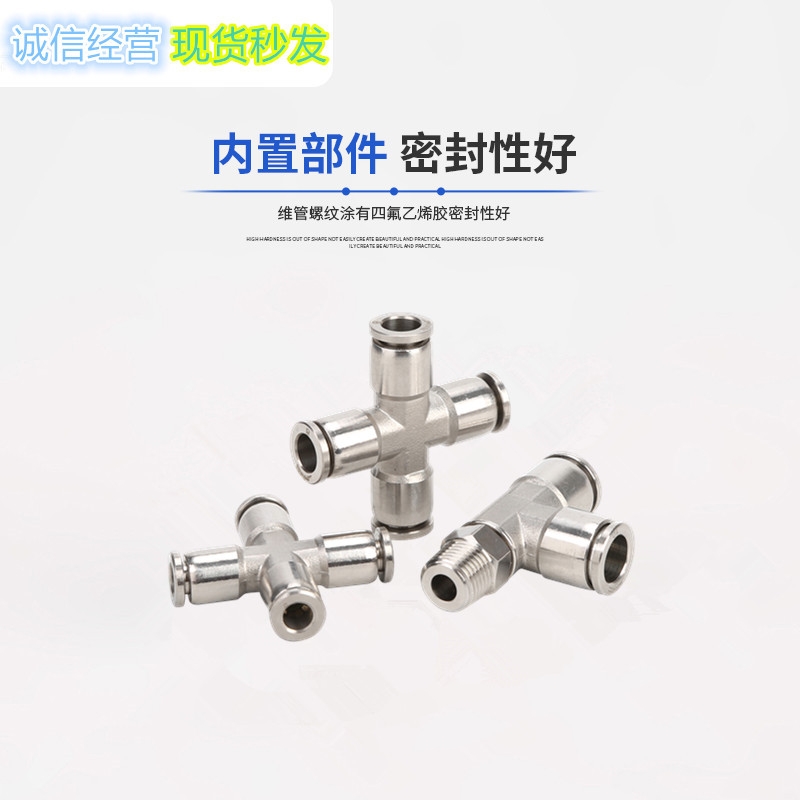 304不锈钢气动快接侧螺纹快插三通PD气源管转换快速接头
