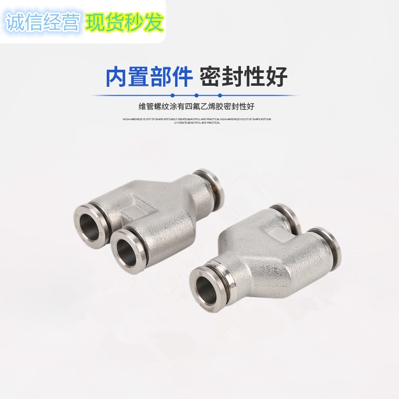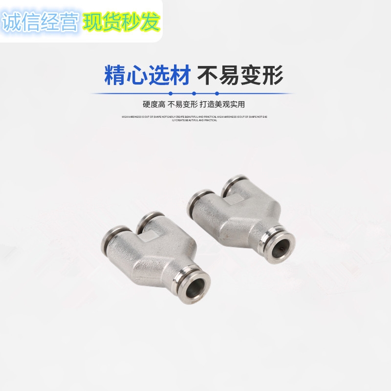 不锈钢Y型快插三通相容性:可搭配尼龙管、PU管、特氟龙管使用,适应性水气环系统、工作母机、车床等。