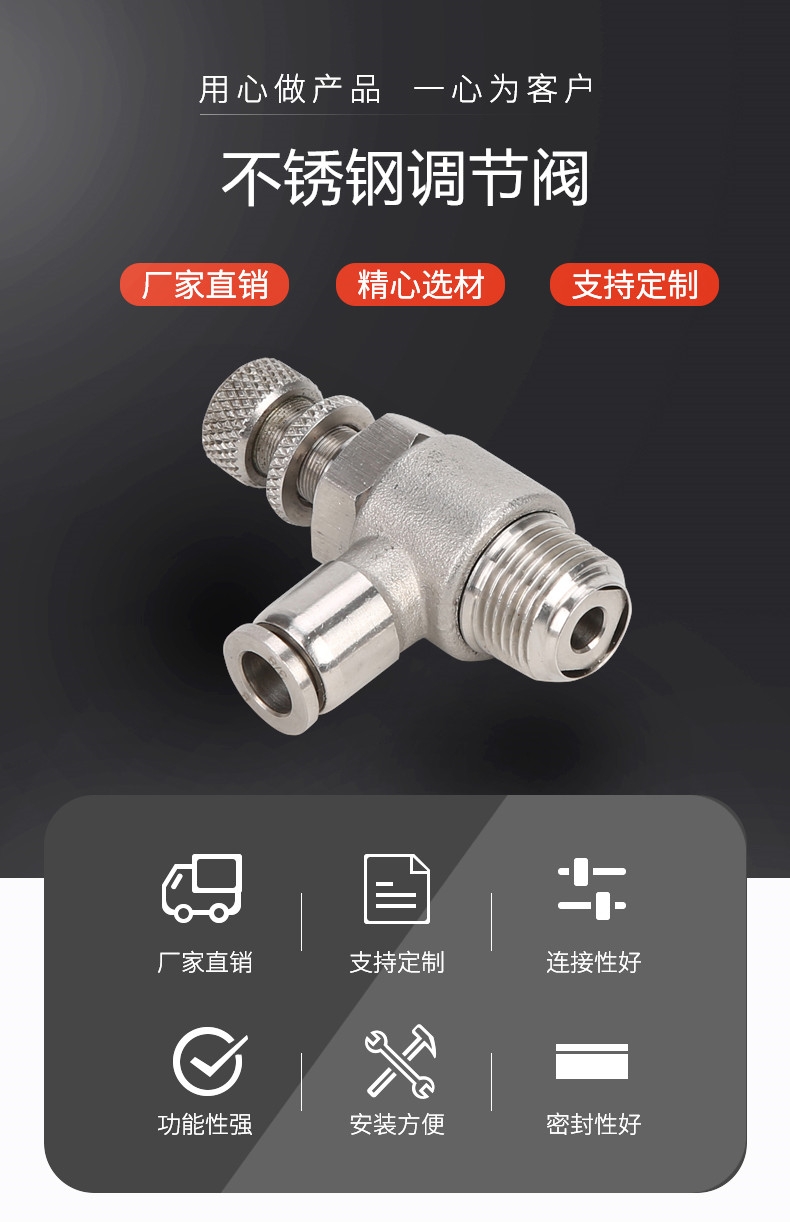 不锈钢管道式节流阀SA8 管道式气动快插接头调节阀SA6