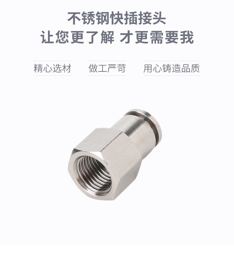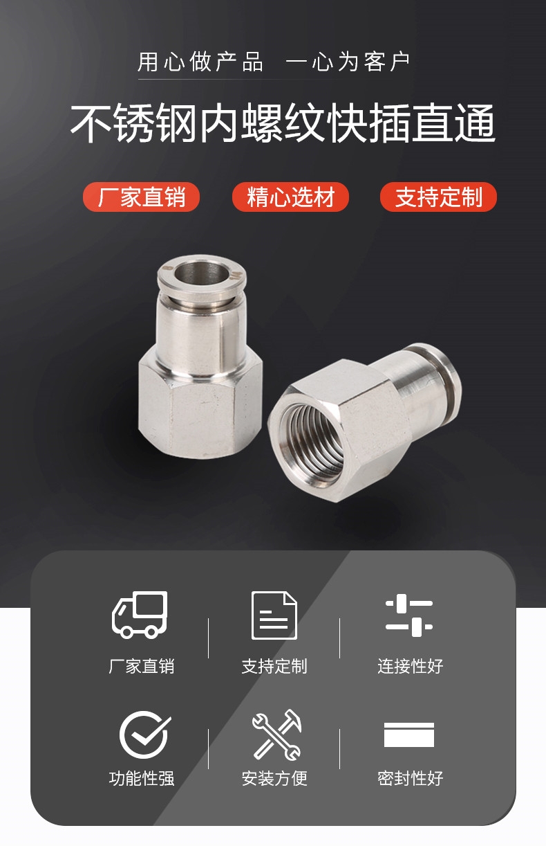 不锈钢快插内丝直通主要用用气体管路中的快速连接。