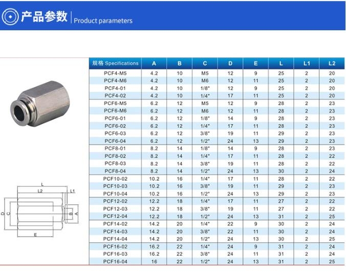 规格:1/4 1/8 3/4 1/2 3/8(1/4-8MM,1/8-8MM,1/2-10MM,1/2-12MM,3/8-10MM