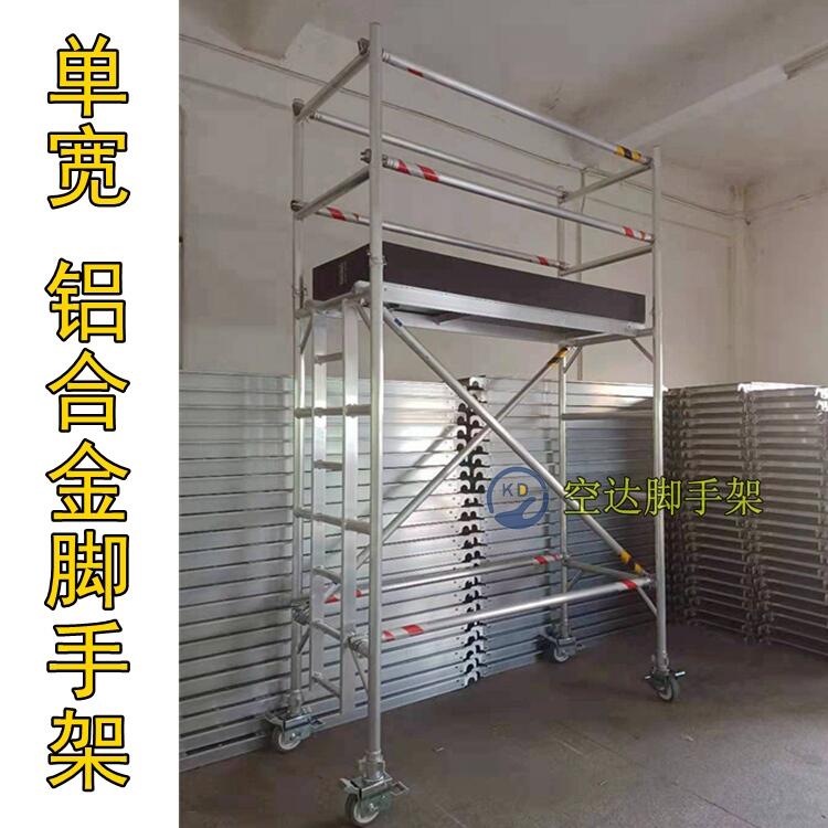 单宽度铝脚手架塔适用于频繁安装/拆卸并将材料运输到不同工作地点的活动。 组装和拆卸单宽铝质脚手架塔至少需要2个人。单宽度铝质脚手架塔对于狭窄的地方,狭窄的道路或门非常有用。单宽铝合金脚手架的宽度为0.75米,因此可以轻松通过门而无需拆除整个塔。单宽铝合金脚手架要比双宽度塔架灵活许多,移动起来轻巧方便,从而大大节省了时间,提高了施工效率。单宽铝合金脚手架平台被广泛用于学校,医院,商场,酒店等各种工作场所。