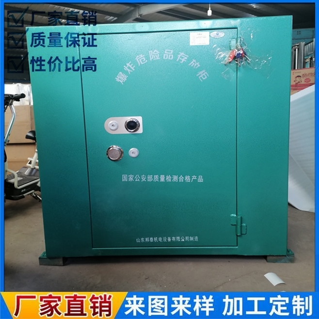 危险品存放柜是移动库房中的库中库,是民爆站、涉爆单位的理想场所,它具有水泥钢筋混凝土浇注库房所具的全部性能之外,还具有可移动性和可拆迁性灵活、方便,体积可大可小、不受限制,今后还可再扩大,缩小,实施快捷,内置防静电设施,重量轻、强度高、耐腐蚀、寿命长、携带方便、容量大等特点,是爆破企业存放危险品的安全柜。