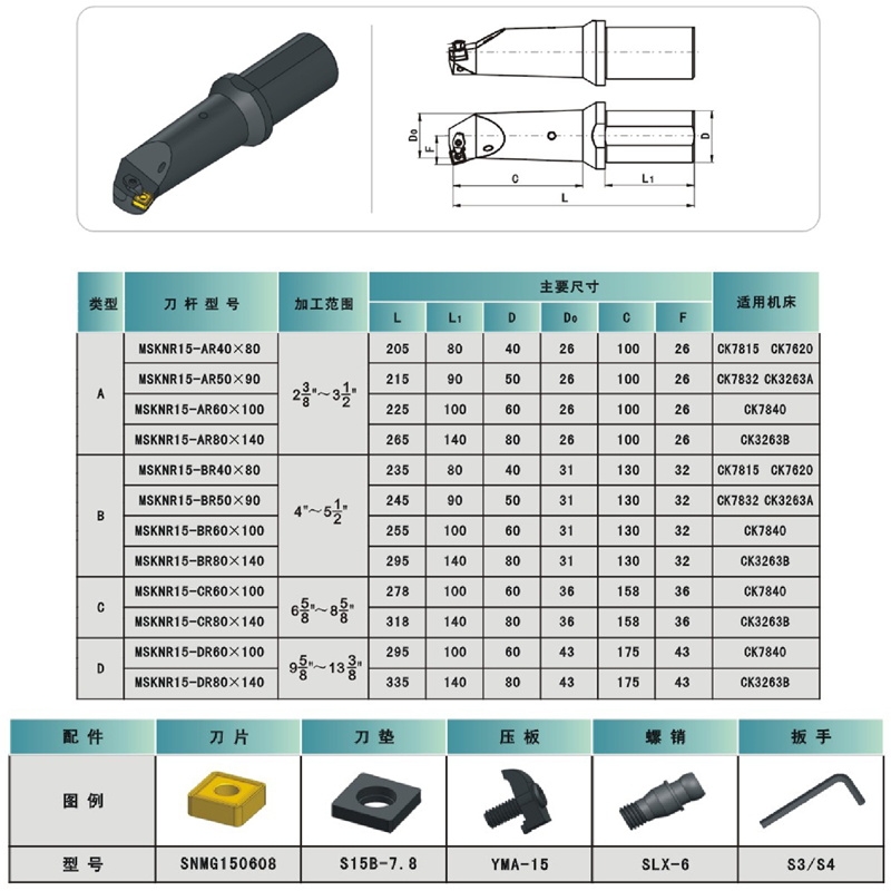 石油管螺纹梳刀刀具镗孔刀杆MSKNR15-CR60×100