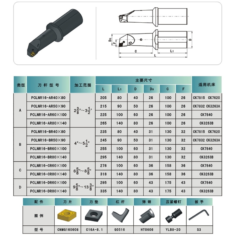 石油管螺纹梳刀刀具镗孔刀杆PCLNR16-CR80×140