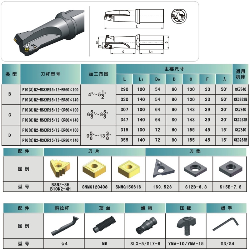 石油管螺纹刀具圆扣内螺纹圆柄复合刀杆P10(8)N2-MSKNR1512-BR60×100