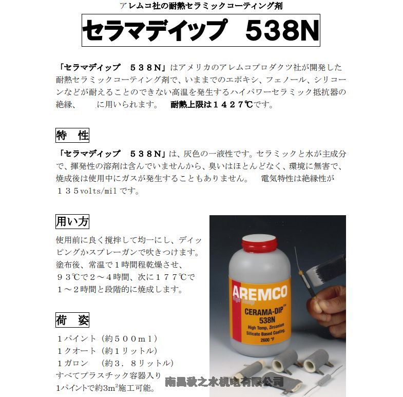 セラミック粉末と無機バインダーで構成された耐熱絶縁コーティング剤です。エポキシ、フェノール、シリコーンなどが耐えることのできない高温を発生するハイパワーセラミック抵抗器の絶縁、に用いられます。 |