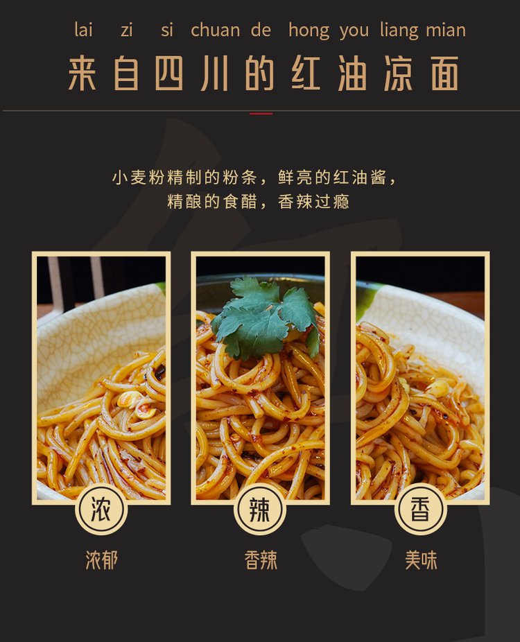 原料与配料 | 凉面、麻辣红油、醋、豆芽 | ||