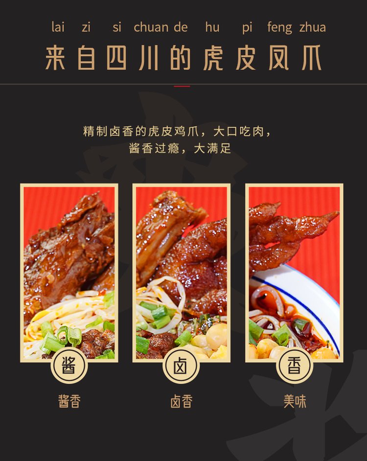 原料与配料 | 鸡爪、食用盐、白砂糖、麦芽糖浆、食醋、植物油、酿造酱油等 | ||