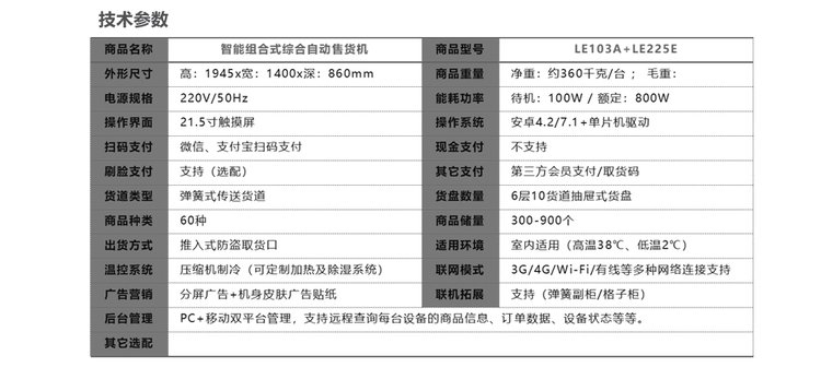 定制投币自动售货机以勒 是 LE103 225E 制冷 300个 瓶/罐装饮料 品牌 | 以勒 | ||