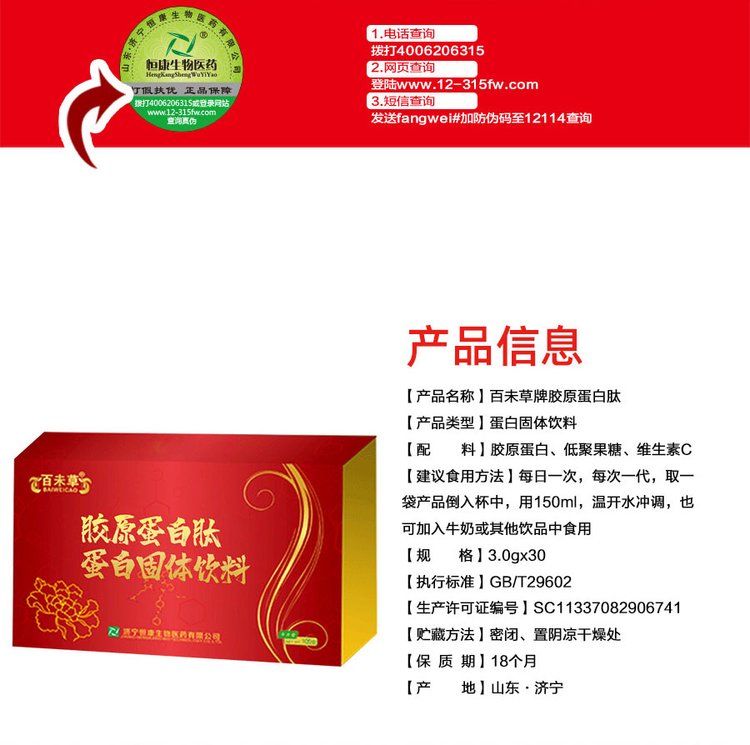 产品配料 | 胶原蛋白肽 | ||