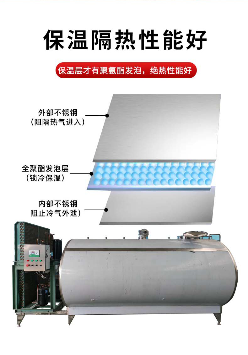 羊奶保鲜冷藏罐 5000L制冷罐 低温保鲜储存罐适用于收奶中心、收奶站、牧场、乳品厂、食品厂和饲养奶牛专业户的理想贮存、冷却集贮设备。牛奶制冷罐牧场机械化挤奶的重要配套设备,更适用于手工挤奶的牧场、收奶站及乳品厂冷却,贮存鲜奶。使冷却原奶保持更佳状态,防止细菌繁殖产生 。