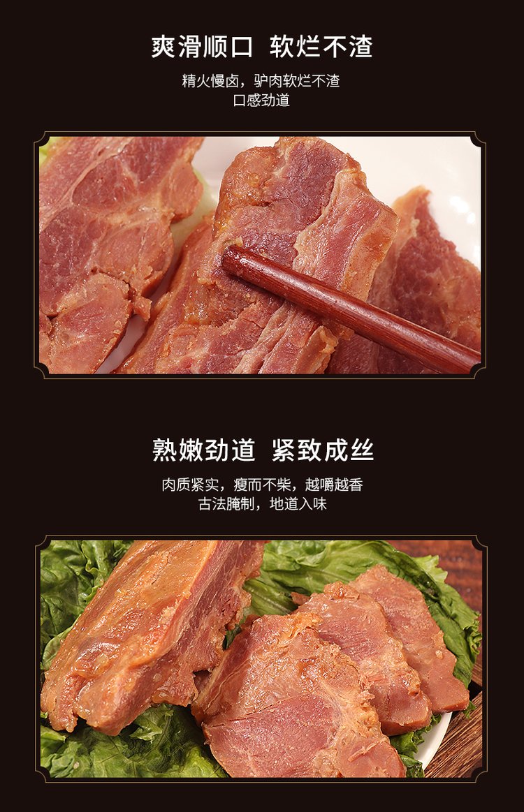 配料表 | 驴肉、淀粉、食用盐、白砂糖、大豆分离蛋白、香辛料、食品添加剂 | ||