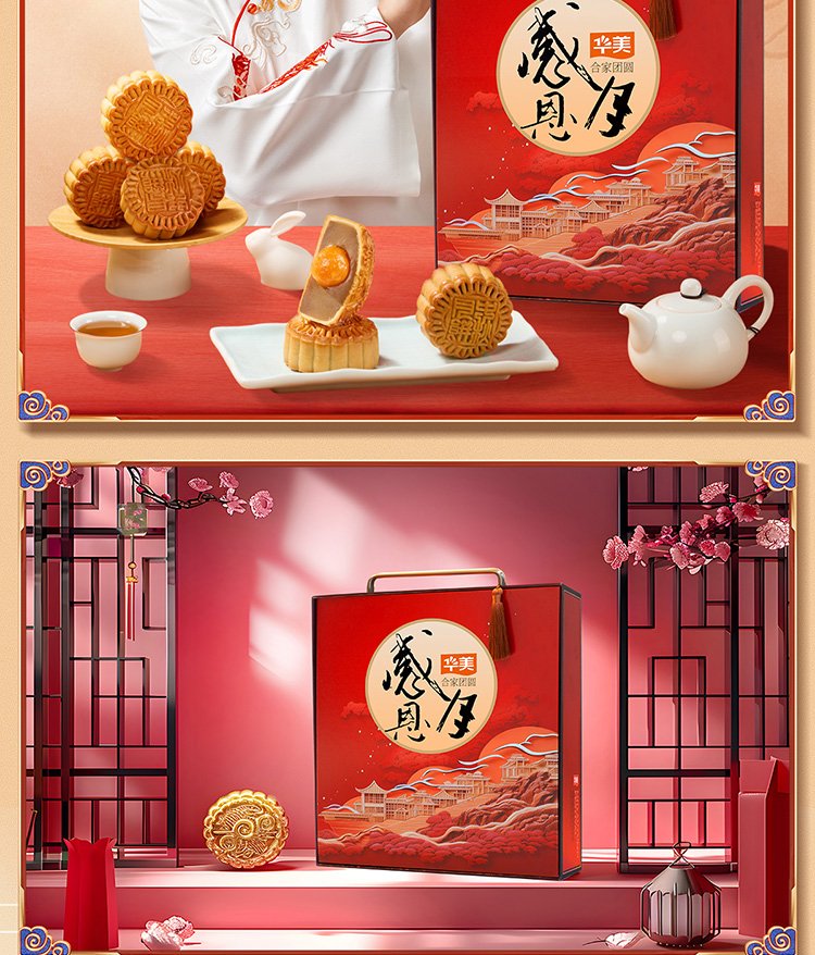 1080G感恩月合家团圆华美月饼多口味中秋送礼团购特产全国包邮