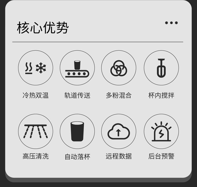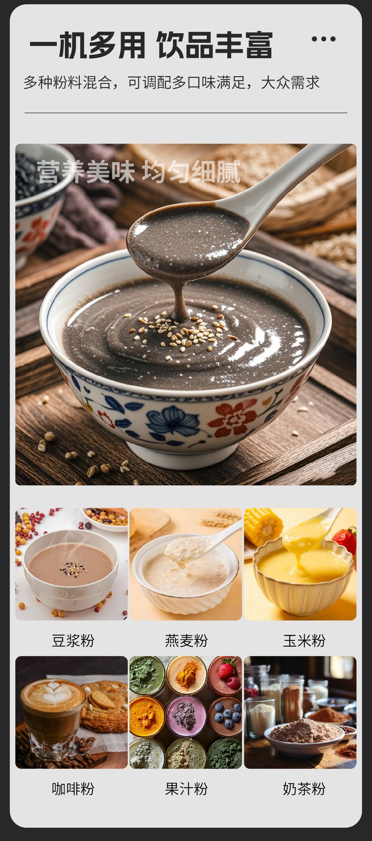 支持种类 | 蛋白粉 五谷杂粮粉料 咖啡 奶茶 饮料 牛奶 等 | ||