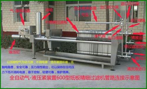 我公司600型板框式纸板精滤机由最早的棉饼过滤机,发展到引进德国SEN公司(现KHS公司)和瑞士FILTROX公司先进过滤技术和制造工艺而研制生产了该精滤机和除菌机30余种规格系列过滤设备。