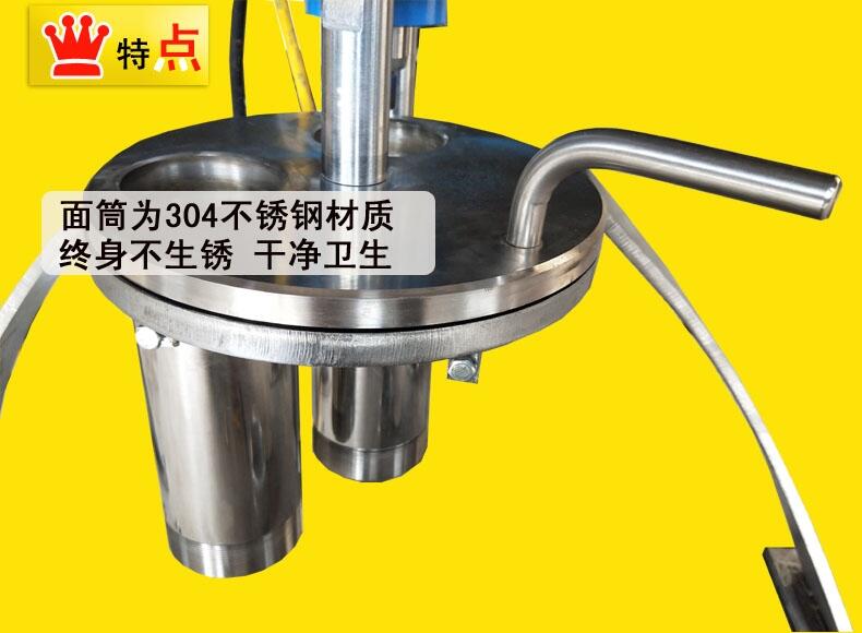 5 .加工的面粉或者挤粉条的面粉应按原料配比要求拌合均匀,(面粉比例为1斤面5两水)不允许将干面粉填入面筒,以防堵住出孔造成机器超负荷运行,损坏机器零件或者烧坏电机,填料后避免长时间空转,停止填料