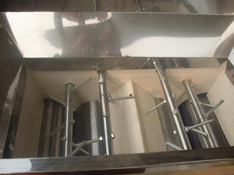 本机是制作鲜湿面条的专用设备,采用一次成型复合压片工艺,配备自动断面、自动撒粉、自动输送装置,代替了传统的人工撒粉、人工断面的繁杂过程,更大程度上降低了劳动强度,提高了工作效率,经多组压延后的面片光滑细致、筋道爽口。(只需更换刀具,便可生产出不同品种的面条)