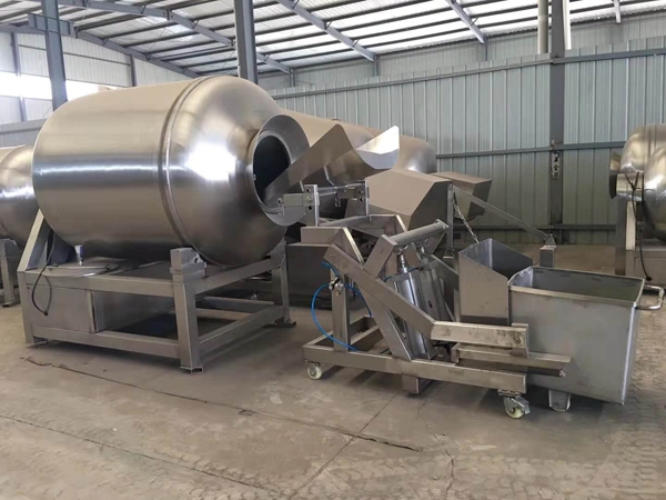 牛肉真空滚揉机是在真空状态下利用物理冲击的原理,使机器使用更安全,真空滚揉机更方便更加节能高效。 使用滚揉机可得到以下效果:使腌制液在原料肉内均匀吸收。增强肉的结合力,提高肉的弹性,保证肉制品的切片性,真空滚揉机防止切片时产生破碎裂口。增加保水性,提高出口率真,提高产品的柔嫩性和结构稳定。让肉在滚筒内上下翻动相互撞击摔打达到按摩腌渍的作用使肉均匀的吸收腌渍,提高肉的结着力及产品的弹性。鸡肉真空滚揉机在运行之前需要对滚揉速度、滚揉时间等数值进行设定,避免滚揉不足,如果滚揉不足,会对肉质有一定的影响,那么会有什么影响呢?