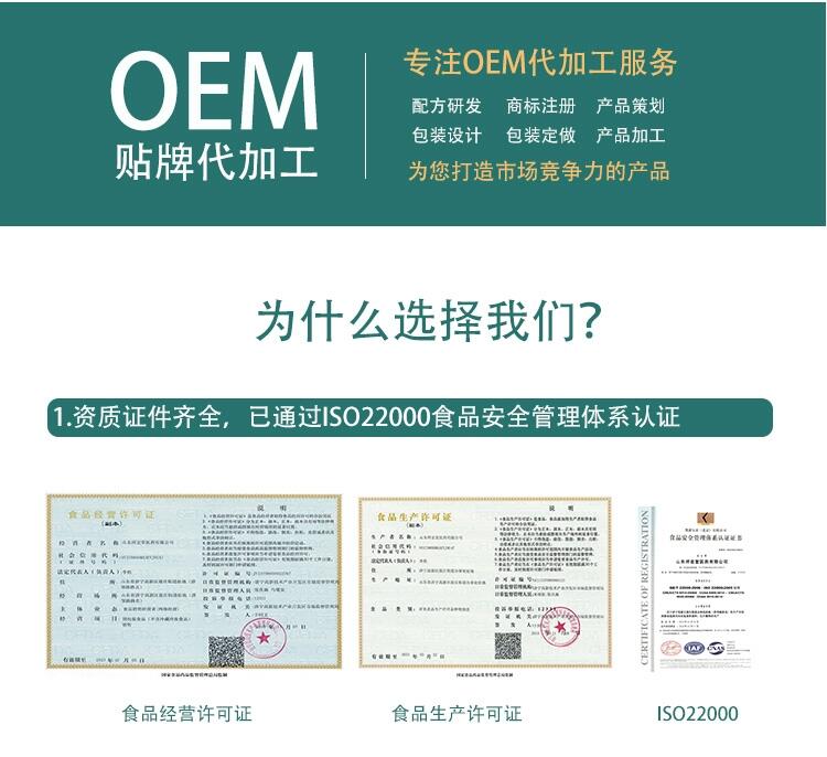 公司承接果蔬蛋白质粉代加工 果蔬蛋白质粉OEM贴牌源头工厂软胶囊、硬胶囊、片剂、粉剂、颗粒剂和固体饮料等 食品代加工业务,价格公道,保证质量。每一款进口原料公司都会要求供应商必须提供GMP、QS等方面的认证,生产流程经过 商检,产品出厂全部进行合格 。提供多个字号和合法批文,从生产到交货全程一对一专人跟进,售后一个月内出现质量问题,无条件退换货。