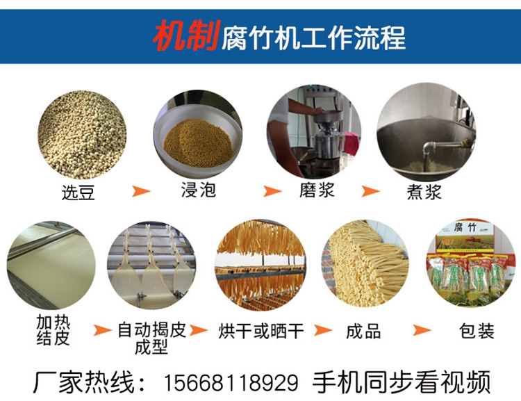 厂家直销「全自动腐竹机」大型自动揭皮烘干豆油皮机 腐竹加工厂投资项目——中科圣创全自动腐竹机结合传统手工揭皮生产工艺,机械化代替手工化,生产环境干净卫生,减少用工人数,提高腐竹生产产量与质量,全自动腐竹机受广大生产者与消费者好评,干净,卫生,先进,是您做腐竹油皮的选择。中科圣创全自动腐竹机代替传统腐竹油皮设备实行自动化运行,自动下浆,自动起皮,自动定型,自动烘烤,自动回潮,自动切割,大小尺寸自动调试,系统采用调频与数控控制。