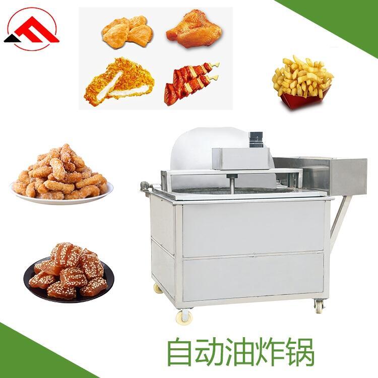 自动油炸锅可实现自动油炸加工,自动出料、自动搅拌、自动控温整个生产过程省时省力。全程油温实现自动控制,温度设定调整方便,油温误差小,适合炸制各种食品。