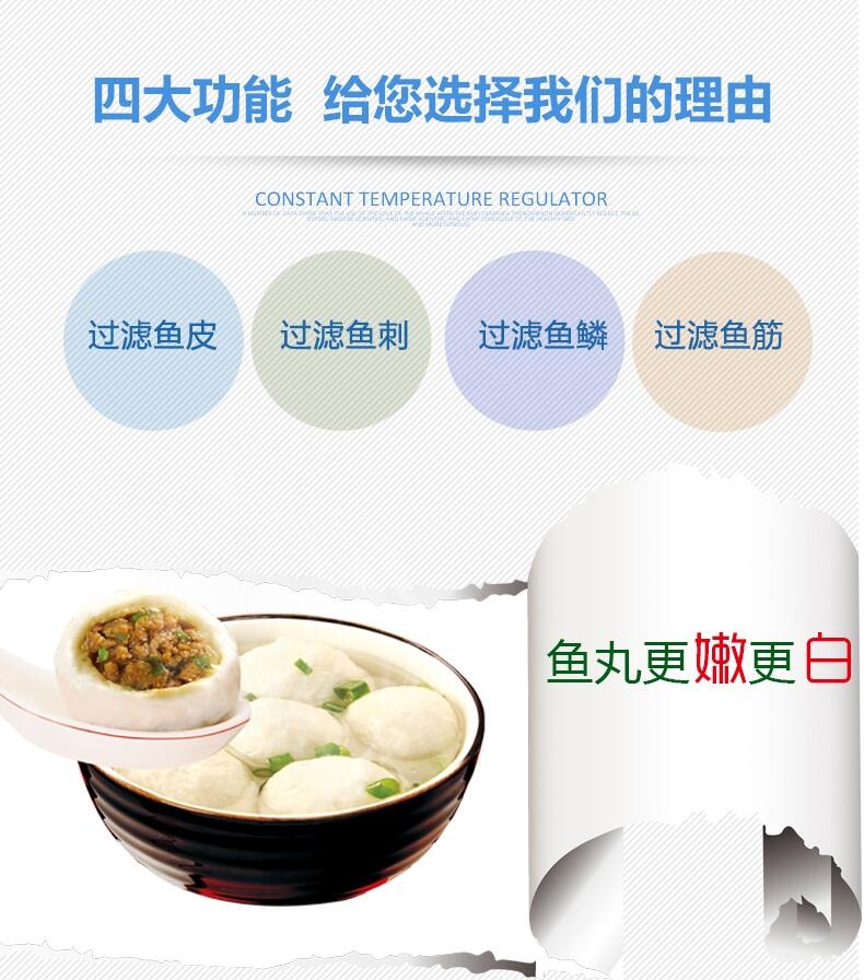 制作高品质鱼糜产品,鱼圆、鱼短腐等。选用材料符合国际食品卫生要求,做工细致、外表美观、便于清