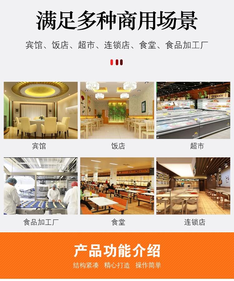 5.功能:本机采用独特的搅拌器,使拌出的肉馅纤维细化,使肉纤维间的动物蛋白能游离析出,以保证肉馅摔和均匀并使之成蓬松状态,加入的调料汁液能充分吸收饱和,以保持馅松/鲜/嫩/口感味道优异的特点;机器采用304不锈钢制作,高品质材料保证了食品加工卫生需求,同时更好的耐盐,耐酸碱,机器使用寿命更长。
