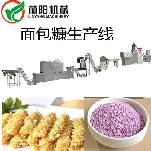 面包糠生产线从原料,膨化,打糠,干燥到成品的整条自动生产线,该生产工艺从面料投入到打碎成型均为流水线生产,人员少,余料可重复使用、无废料、降低了制造成本,提高了劳动生产率。面包糠是广泛使用食品添加辅料,主要用于炸牛排,炸鸡腿等油炸辅料。
