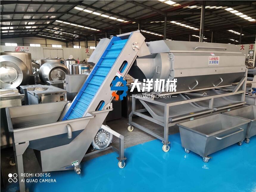 连续式清洗磨皮机 不锈钢土豆清洗磨皮机,广泛用蔬菜、海产品、于杏干、白果、葡萄干、肉制品清洗领域。清洗的物料由进料斗到滚筒内,随滚筒的转动而在滚筒内不断翻滚相互摩擦,上有喷淋水的冲洗使物料表面的污垢和泥砂脱落,由滚筒的筛网洞孔随喷淋水经排水斗排出。由进料口进入清洗槽内的原料,滚筒内有间隔的毛刷被清洗物料在压力差和刷辊摩擦作用下通过刷辊, 进一步得到刷洗。而后,被清洗物料在出料翻斗中又经高压水得到进一步喷淋清洗。 箱体采用优质304材料制作。不修蚀、清洁卫生,毛辊不易变形,毛刷采用尼龙线绳轧制而成,经久耐用达到产品出口标准要求。减少了人力成本、降低了劳动强度,技术部性能稳定,效率高等特点。可根据客户要求定制。全不锈钢制作,符合