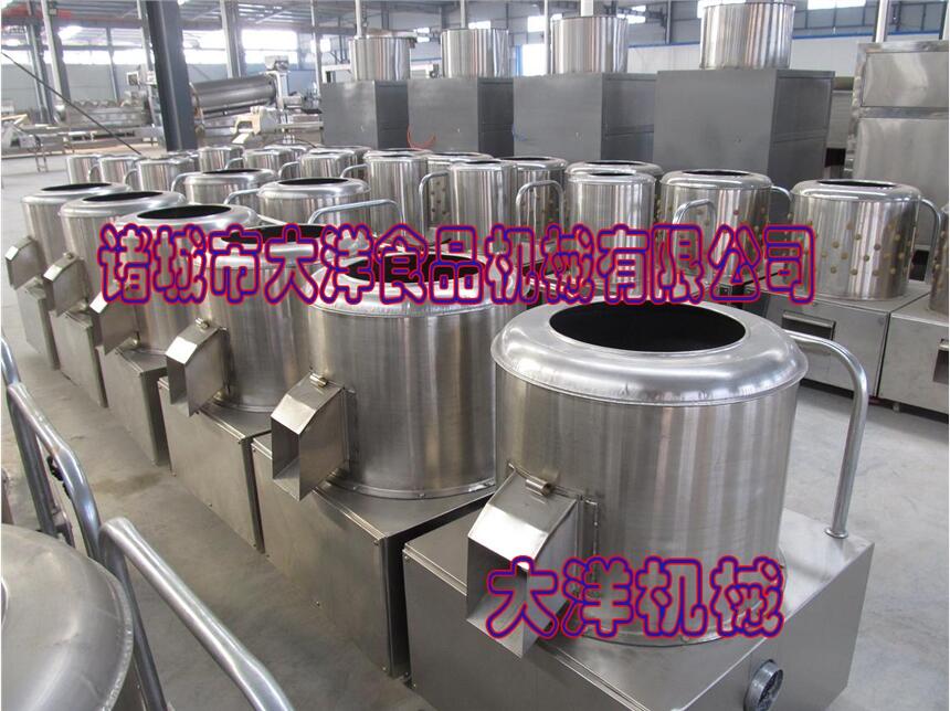 筒式土豆去皮机 专业销售芋头脱皮机,采用不锈钢材料制作,保证长期工作不锈蚀,干净卫生、生产效率高,操作简单,维修方便,主要用与土豆、地瓜、毛芋头、荸荠等的脱皮。该机设计合理,外型美观,效率高,操作简单,自动喷水清洗,当芋头等放入料筒后,电机带动拨料盘转动,使芋头不断翻动与料筒的内砂壁接触摩擦去皮,同时用冲水管将磨下的皮及沙土等污物冲洗干净,经排水口随水流出。经该机脱皮的土豆、地瓜、毛芋头、中药半夏、猕猴桃等果蔬表面光滑、细腻不带细皮及杂质,无破碎现象,克服了老式脱皮机脱皮时带砂的弊端,是厂矿企业、机关、学校等单位厨房食堂的必备机械。