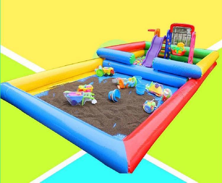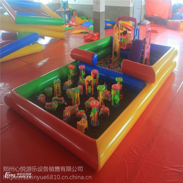 郑州心悦游乐设备厂生产的充气沙滩池气垫海洋球是室外广场,公园,小区等各种休闲场地的一款好玩的儿童游乐项目。