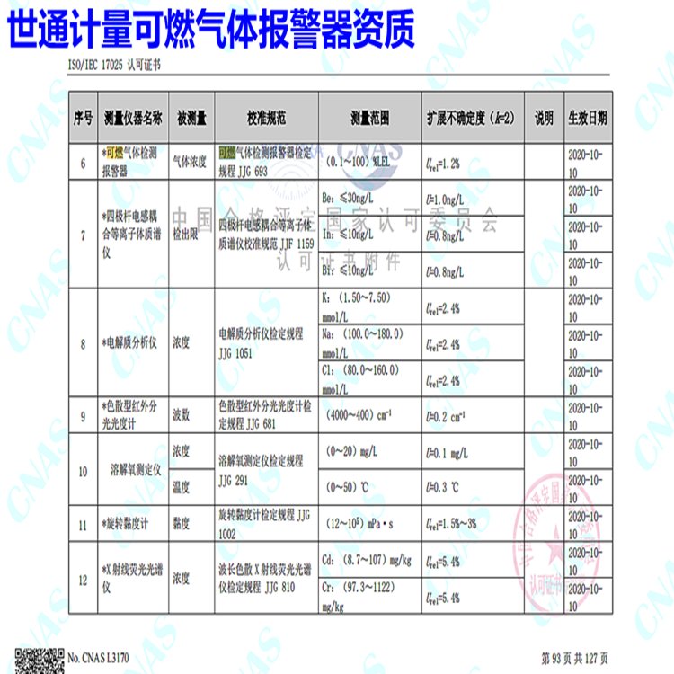 气体报警器计量检测ISO认证校准计量机构世通仪器检测