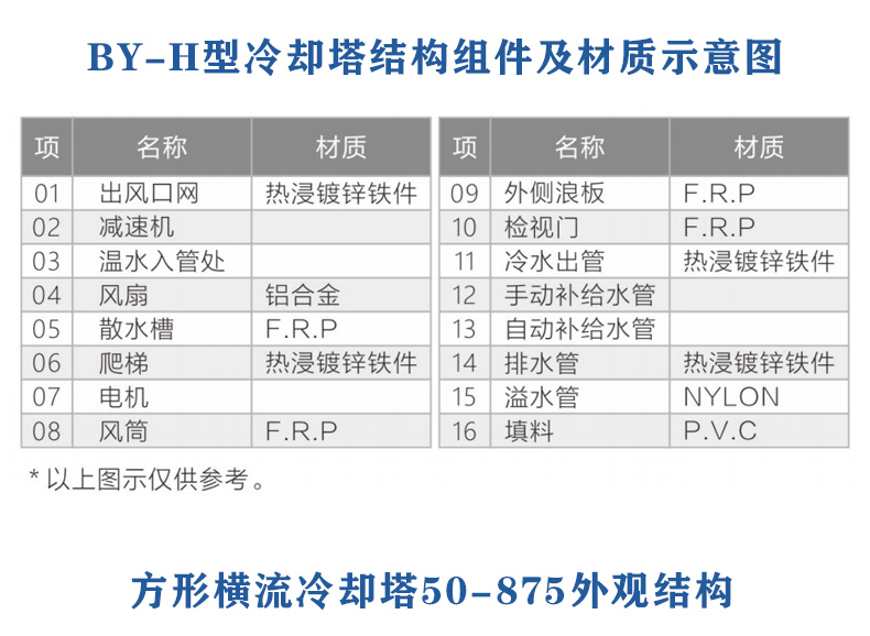 热水和空气流动方向 | 逆流式冷却塔 | ||